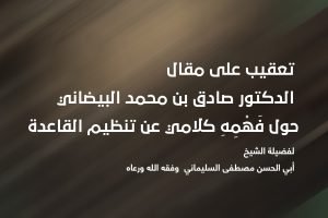 بسم الله الرحمن الرحيم (تعقيب على مقال الدكتور صادق بن محمد البيضاني حول فَهْمِهِ كلامي عن تنظيم القاعدة) الحمد لله رب العالمين، والصلاة والسلام على أشرف...