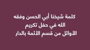 كلمة شيخنا أبي الحسن وفقه الله في حفل تكريم الأوائل من قسم الأئمة بالدار